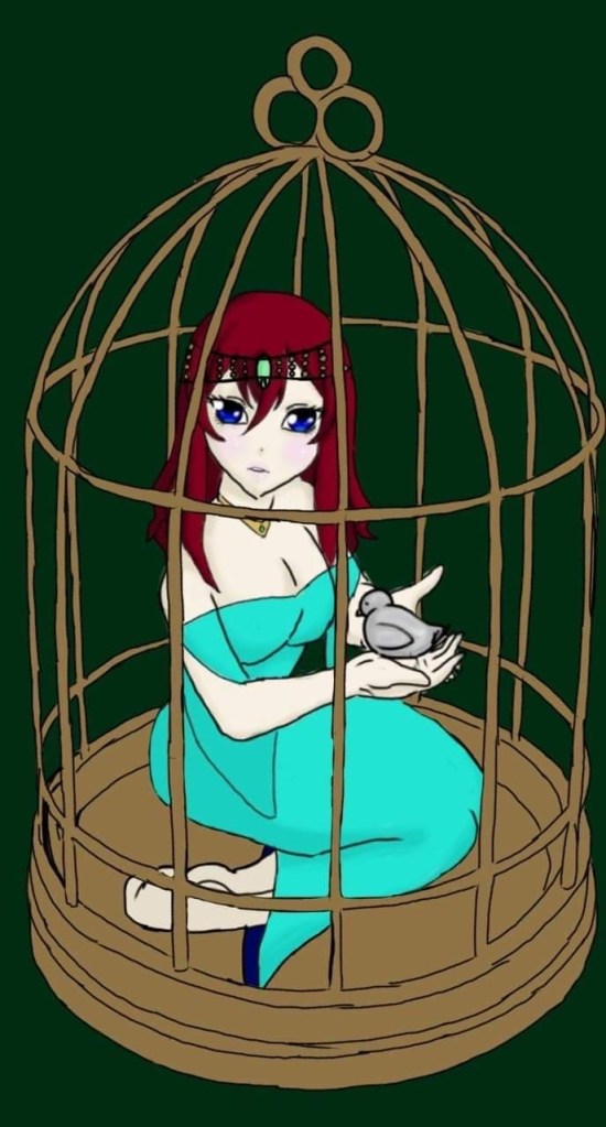 Picture 1 Dwarf in armour Picture 2 Elf trapped in giant birds cage